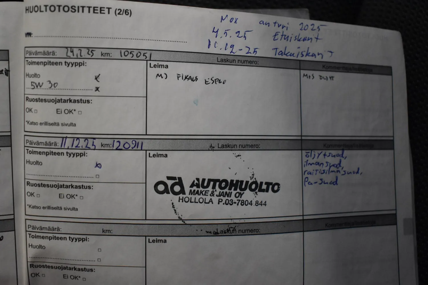 - Edellinen katsastus 11.12.2025