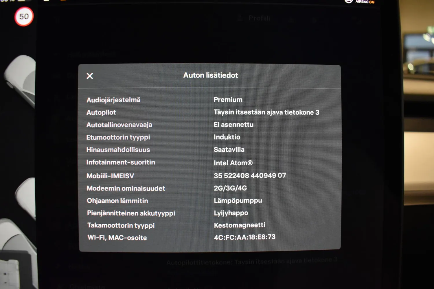 Auton lisätiedot ja varustelu